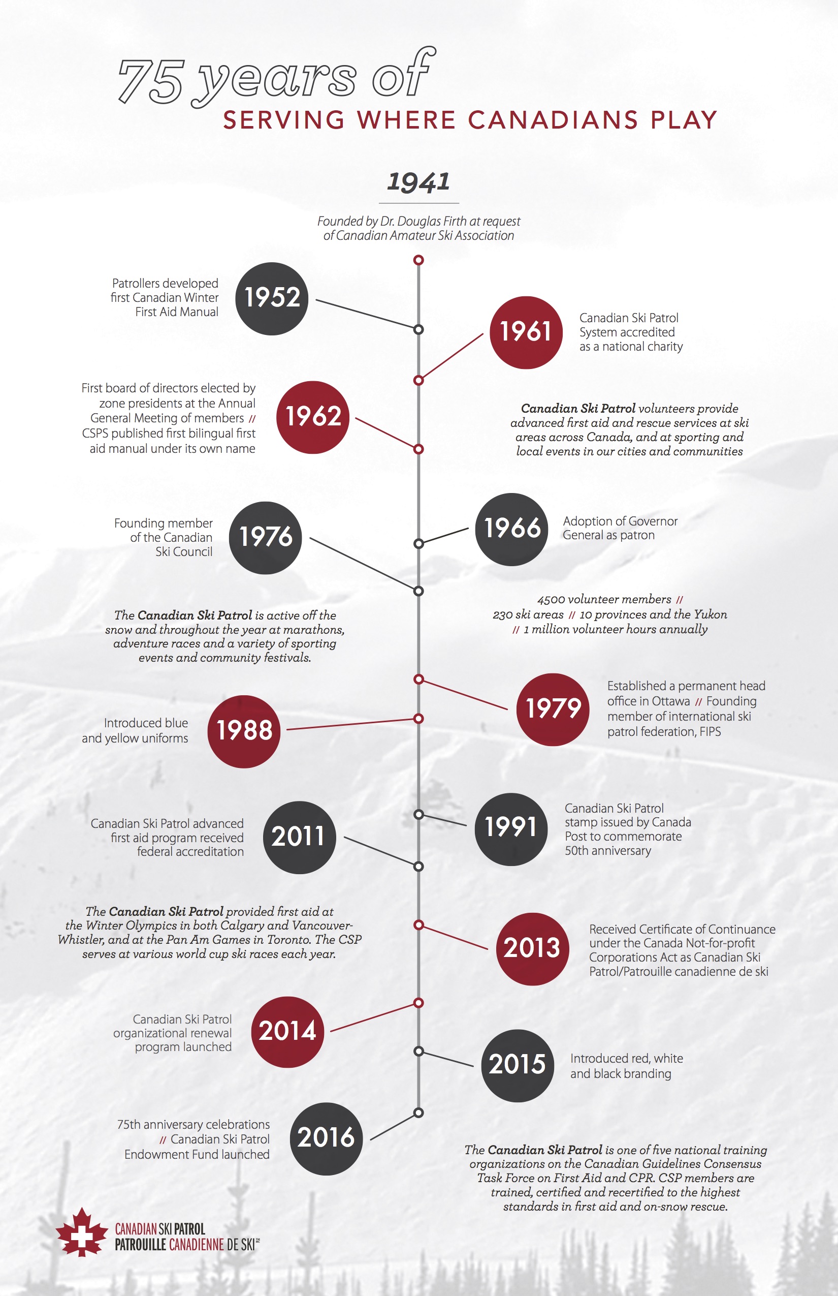 Source: “May I Help You: The First Fifty Years of the Canadian Ski Patrol System” (1994), a book chronicling the first fifty years of the CSP, by John and Carole Laffoon. For purchase, contact info@skipatrol.ca