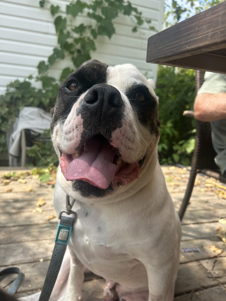 Zero is a four-year-old American bulldog. His favourite things are being a couch potato, heated blankets (on the couch) and snuggling. His favourite treat is croissants, so he has quite refined taste! We are not sure he’s quite ready to join the CSP Motorcycle Emergency Response Unit (MERU) as a patrol dog, but if dog snuggles count as a treatment, he’s on board.